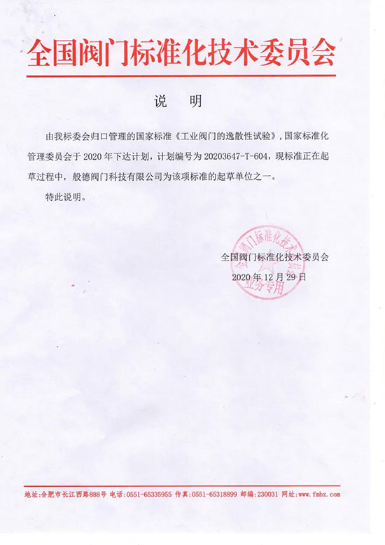 圖|般德閥門是《工業閥門的逸散性試驗》標準的起草單位之一